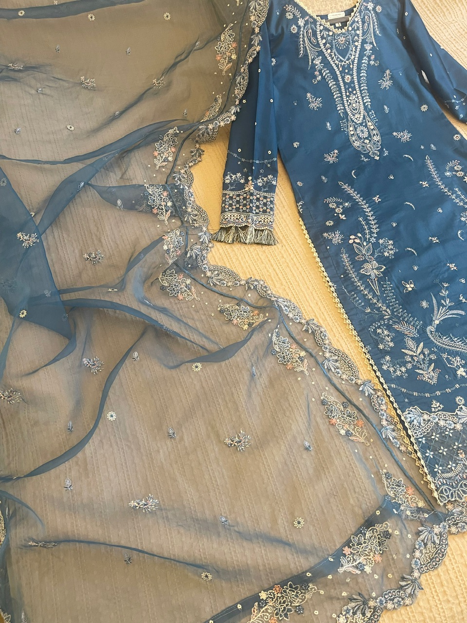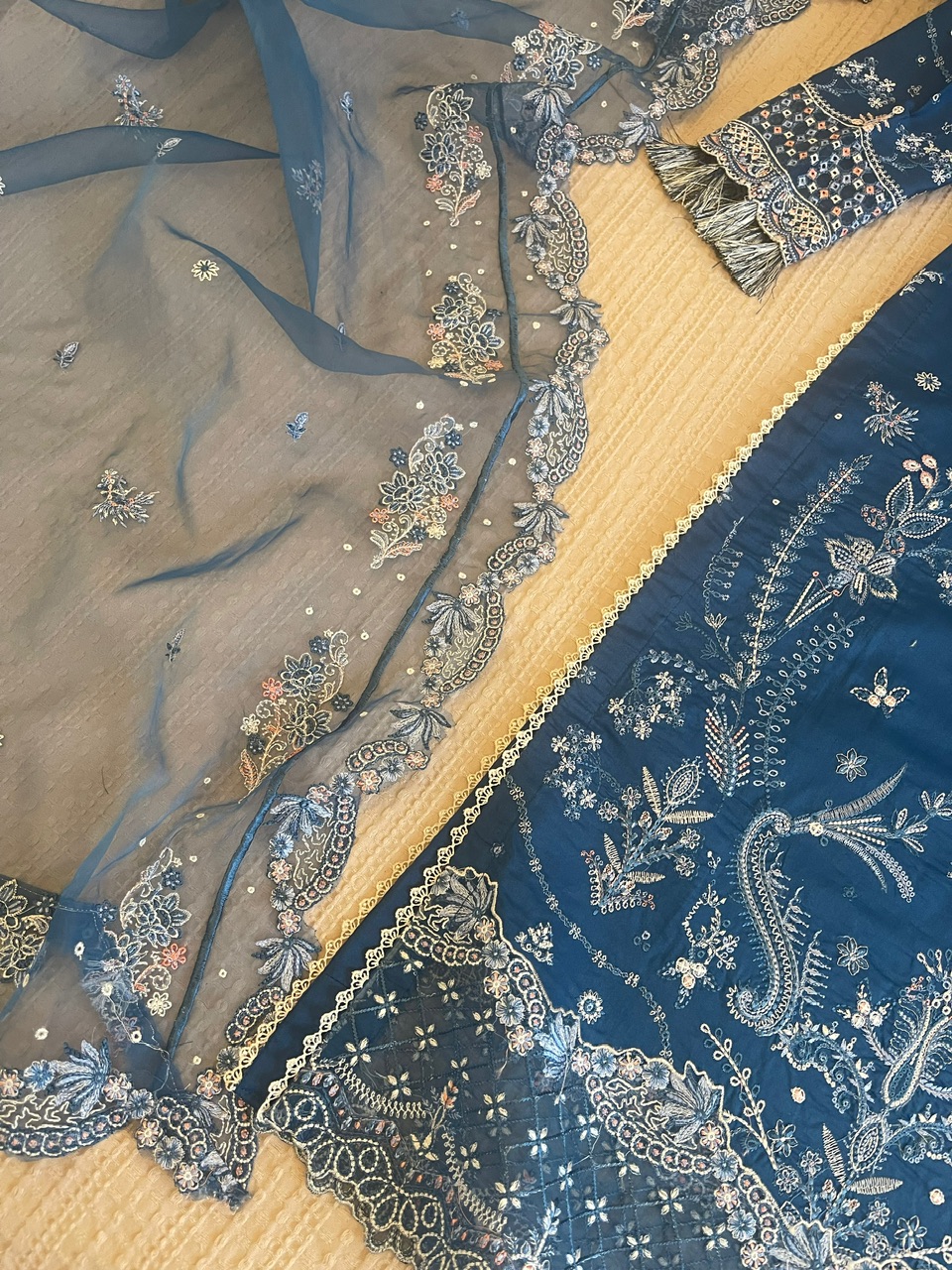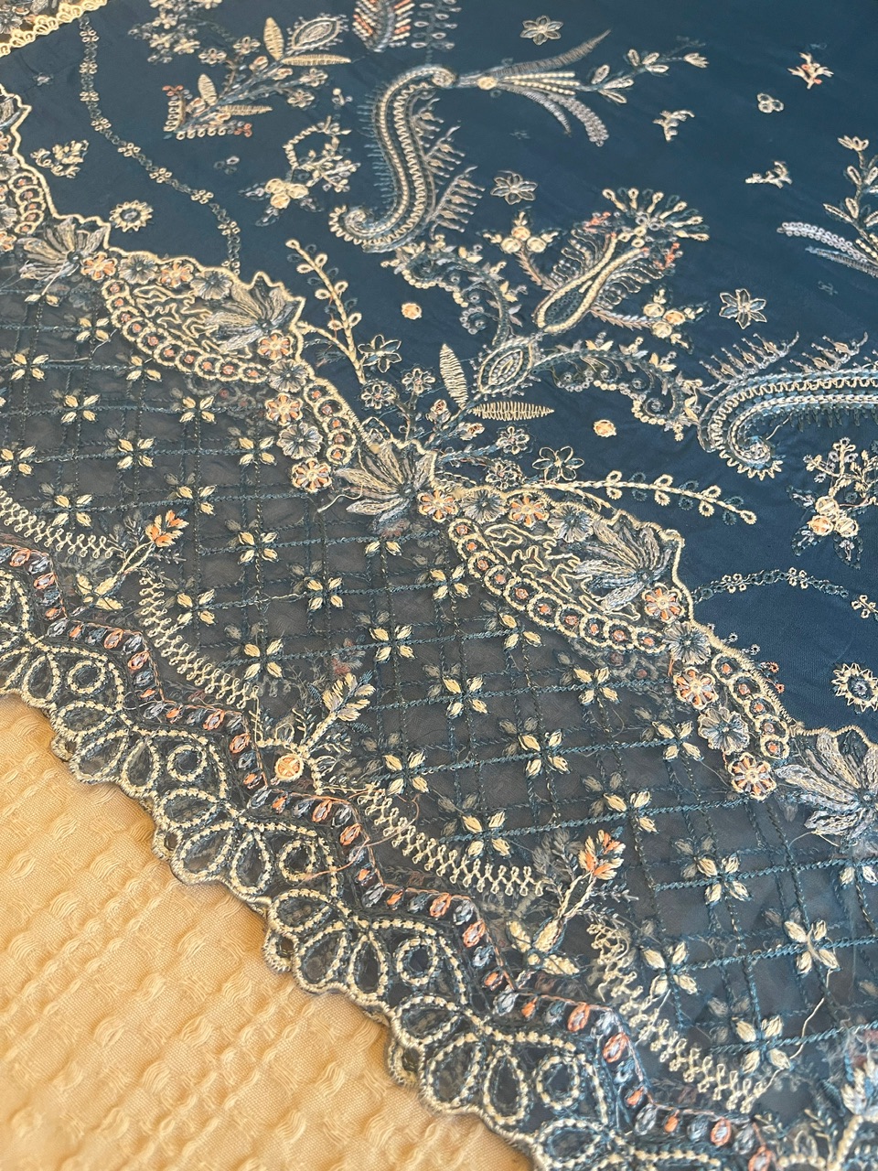 -heavy embroidered organza front back borders